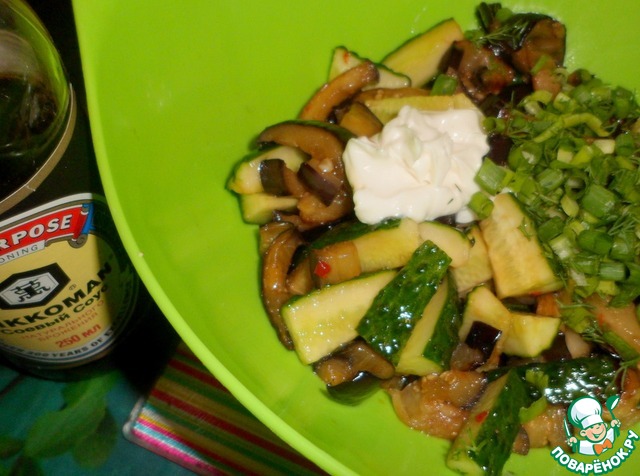 Галя, принимай фотоулику... Закуска очень понравилась! Свежесть огурцов в сочетании с обжаренными баклажанчиками - просто супер! Майонезом не заправляла, хватило масла от баклажан и соевого соуса. Буду повторять однозначно. Спасибо за рецепт!