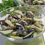 Галочка, милая! Ну, до чего же удачный рецепт! По правде сказать, я даже не предполагала, что будет настолько вкусно! Все компоненты салата отлично дополняют и сочетаются между собой. У меня единственная рекомендация: готовьте сразу дойную, а то и тройную порцию салата, иначе, кто-то из ваших близким очень рискует остаться голодным, так и не успев попробовав этот салат.