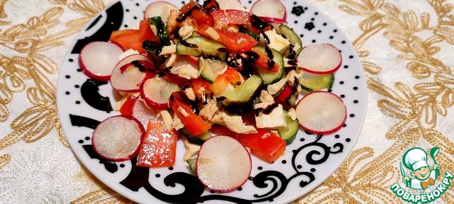 В оригинале ещё был огурец свежий и вместо редьки редис. -