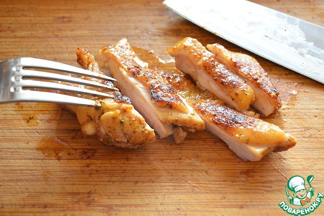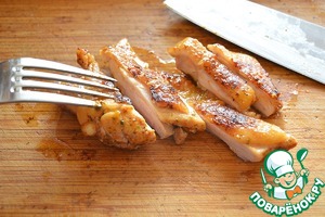 Нарежьте готовое филе на кусочки