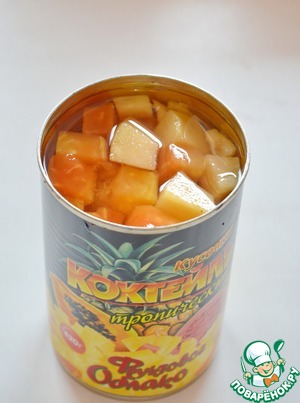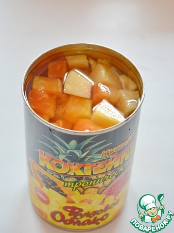 Для рецепта я использовала консервированное ассорти из тропических фруктов (манго, папайя, ананас)
