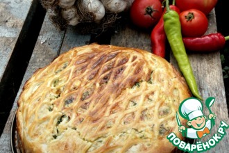 Хорошо разогреваем духовку и выпекаем пирог при температуре 180 градусов 40 минут