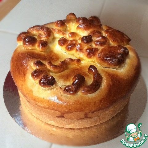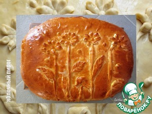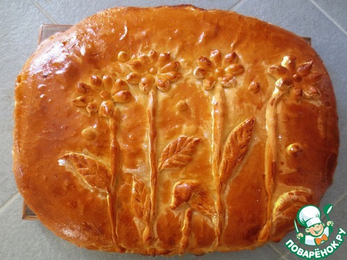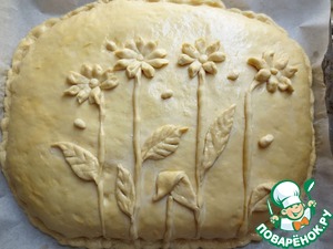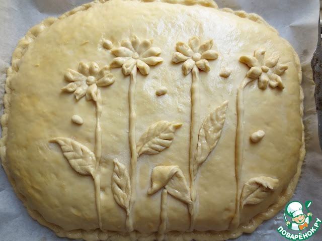 Смазываем поверхность пирога взбитым с молоком желтком и оставляем на 15-20 минут. -