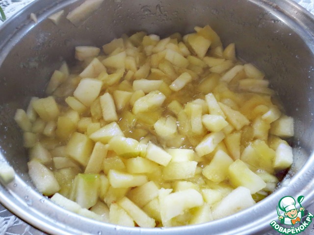 Яблоки помыть очистить от кожуры и сердцевины, разрезать на кусочки, положить в кастрюлю, высыпать сахар.