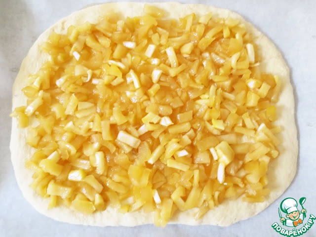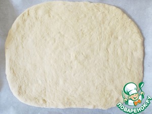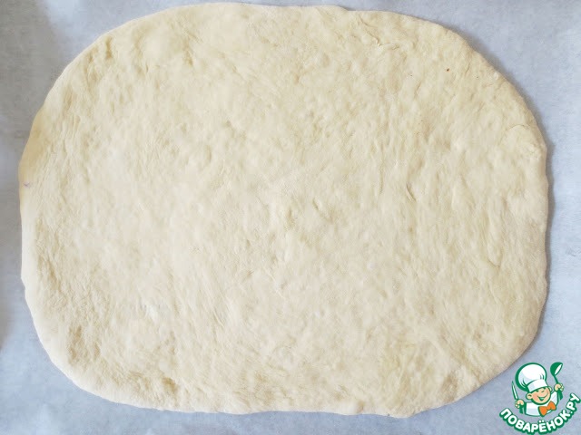 Одну часть накрываем, чтобы не обветрилась, а из второй раскатываем прямоугольный лист по размеру Вашего противня. -