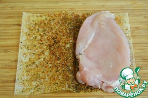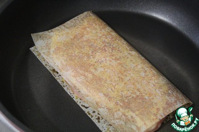 Развернуть лист Магги, положить на одну половину отбитое филе.