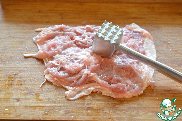 Итак, филе с окорочка снято, его нужно отбить до толщины 1 см