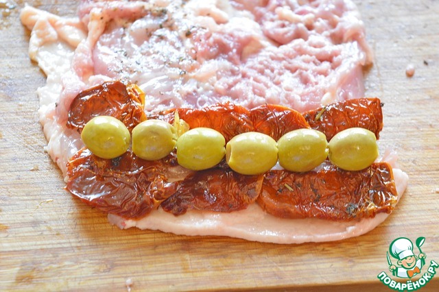Потренироваться делать рулетики можно на филе куриных грудок, хорошо отбив предварительно. Мясо куриного филе более податливо