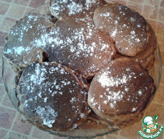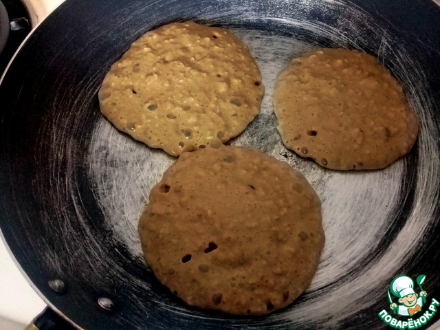 На сухую сковороду, предварительно разогретую, по одной столовой ложкой выкладываем тесто, формируя панкейк.
