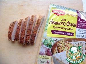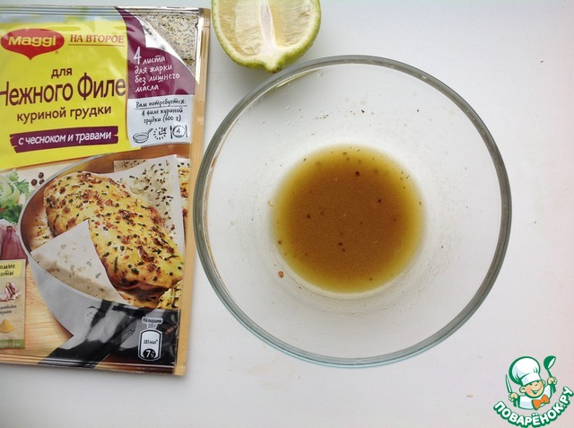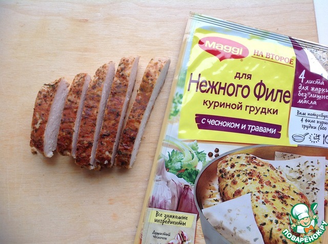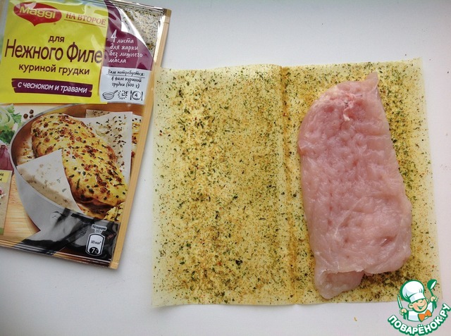 - Специи ("MAGGI на второе для нежного филе куриной грудки с чесноком и травами" — 1 лист) — по вкусу