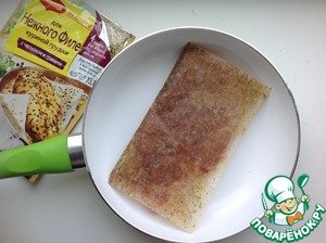 Сухую сковороду разогреть на огне и положить на неё завёрнутый рулет. Готовить на слабом огне в течение 7 минут с каждой стороны.