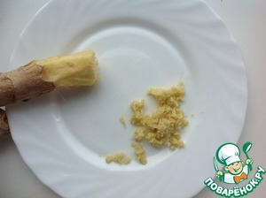 Имбирь очистить от кожицы, натереть на мелкой тёрке. Выжать 1 ч. л. сока.