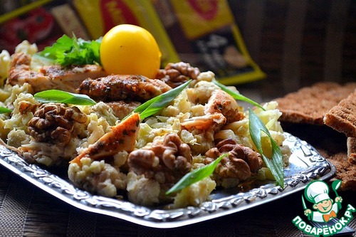 В этом вкусном и нежном салате несколько составляющих, но главных два - цветная капуста и куриное филе. У них две ведущие партии и они гармонично их исполняют. Очень люблю баланс вкуса и текстур в этом салате. Всем любителям цветной капусты настоятельно рекомендую, здесь она раскрывается с новой стороны.