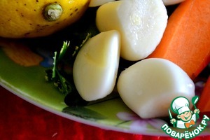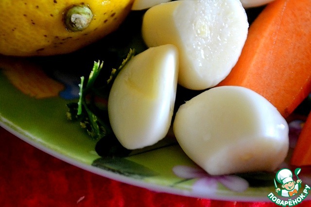 И тертый чеснок. Солим, перчим, кладем лимонный сок, заправляем оливковым маслом.