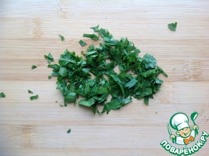 Зелень сполоснуть водой, обсушить и нашинковать. Зелень можно взять любую, какая вам больше по вкусу. У меня петрушка.