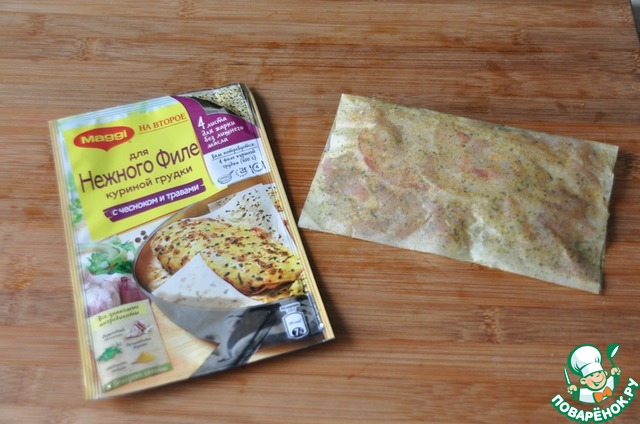 - Приправа (MAGGI® На второе для нежного филе куриной грудки c чесноком и травами) — 1 пач.