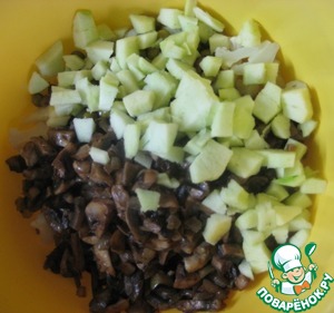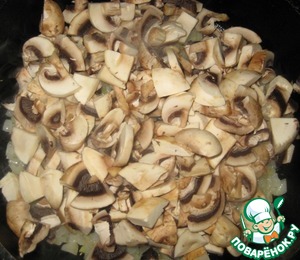Шампиньоны нарезать кусочками (размер выбирайте по своему вкусу, у меня довольно крупные кусочки).