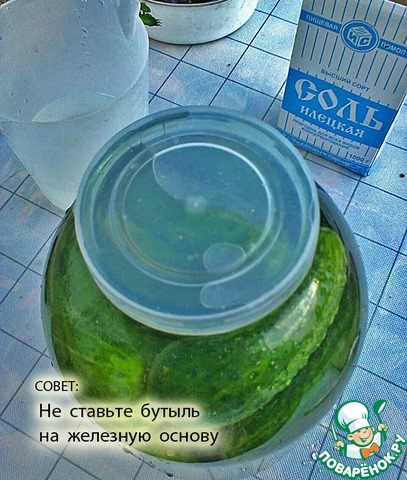 Бутыль с огурцами ставим на брожение в помещении
