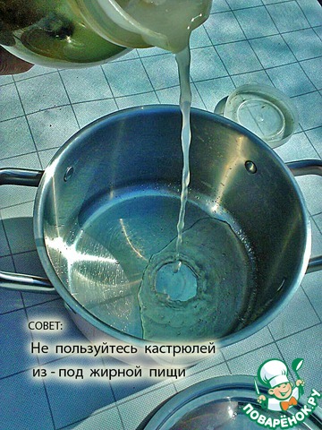 в кастрюлю. Все до капли.