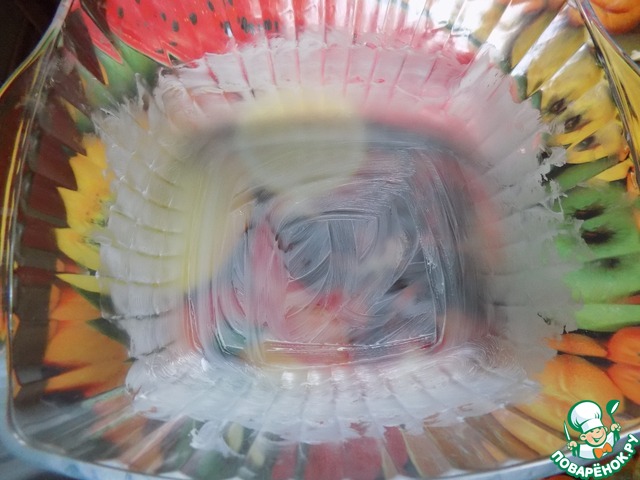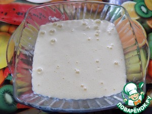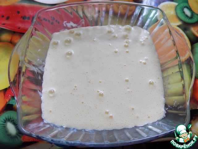Заливаем полученным тестом. Оно получается жидким, похожим на блинное.