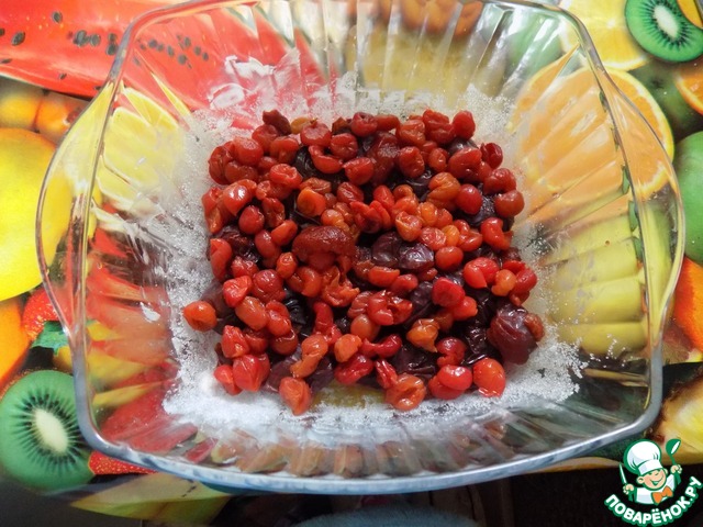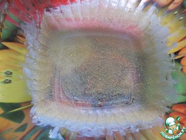 Насыпать в форму немного сахара и вращать ее вокруг своей оси, чтобы сахар равномерно распределился по смазанной поверхности. Я использовала коричневый сахар.
