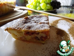 Подавать можно в теплом или холодном виде, посыпав сахарной пудрой.