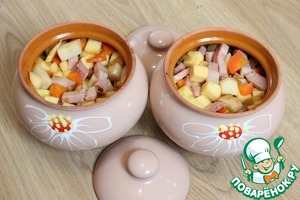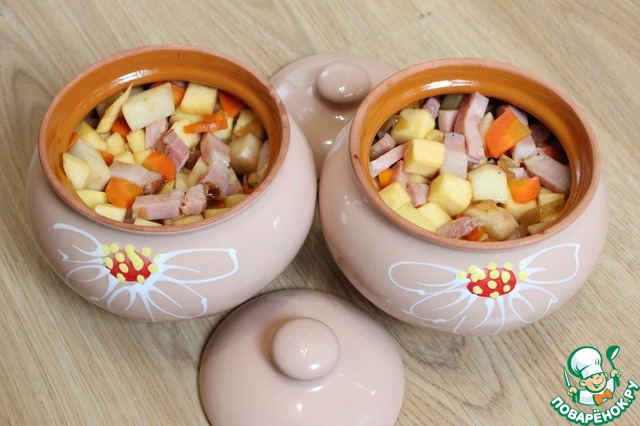 Рецепт «Корнеплоды, запечённые с ветчиной и грудинкой»: