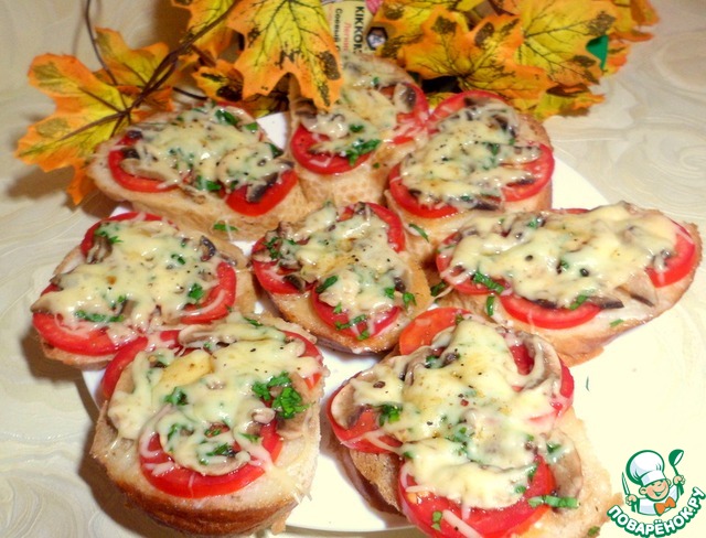 Рецепт «Горячие бутерброды с грибами и помидорами»: