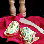Багет нарезать на кусочки, толщиной 1 см. Я нарезала 8 шт, по два бутерброда на порцию.