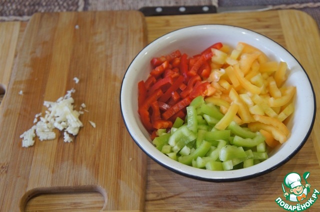 - Перец болгарский (красный, желтый и зеленый) — 3 шт