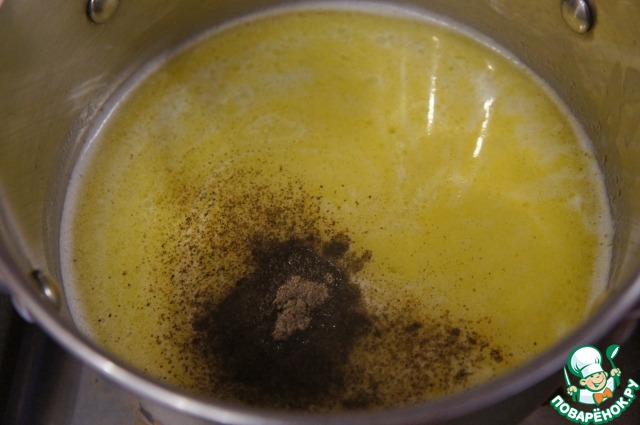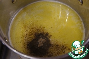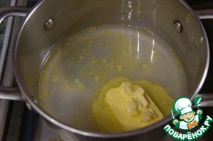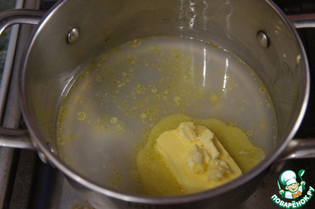 Нагреть 3 ст. л. масла и 1/2 чашки куриного бульона в кастрюле на среднем огне. Держать до тех пор, пока масло не расплавится.