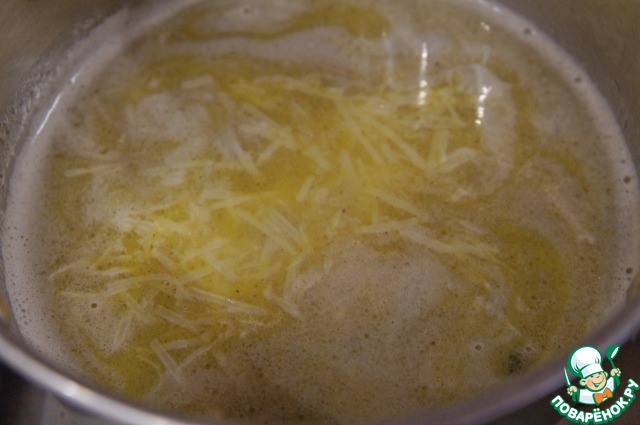 Варить на среднем огне, помешивая время от времени, пока сыр не расплавится. -