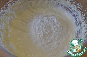 Смешать муку, крахмал и разрыхлитель, отставить.