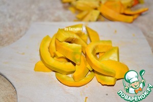 • Удалить семена и кожуру, порезать тыкву на кусочки;