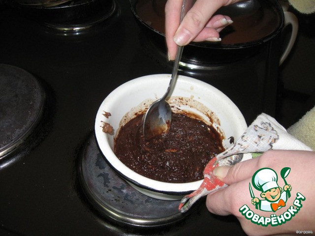 11. Для глазури использовал шоколадку "Аленка". Приготовление растопленного шоколада доверил жене.