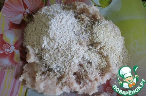 Овсяные хлопья измельчить в блендере, добавить в фарш -