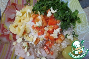 В конце порезать кусочками сливочное масло, также добавить в фарш. -