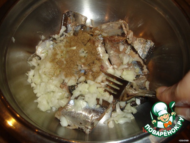 Из рыбной консервы слить жидкость и переложить её в миску,