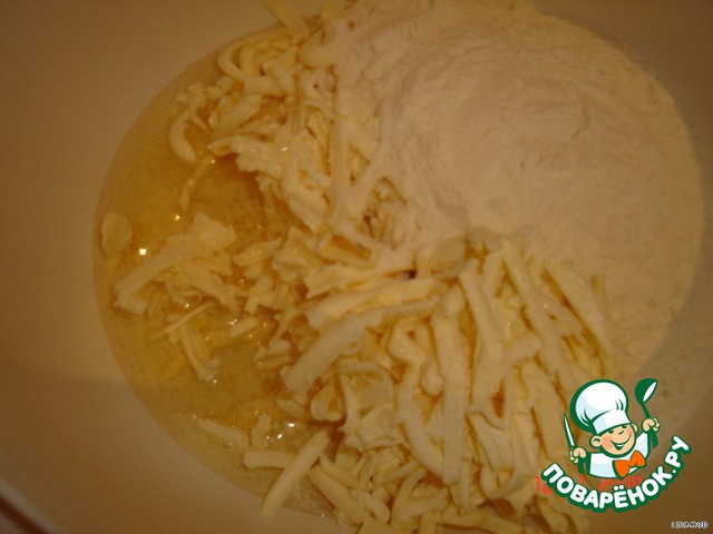 в замесочное блюдо натереть на тёрке (крупной)маргарин,