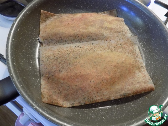 Если нет листиков-магги, то можно просто на сковородку положить бумагу для выпечки, а курицы посыпать специями.