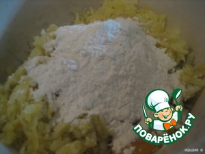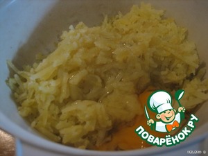 Отвариваем в мундире картофель, остужаем его и трём на тёрке + 3 яйца...