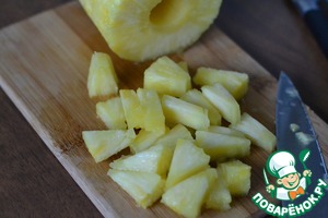 Свежий ананас нарезать на кусочки.