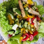 Замечательно вкусный, красивый и простой салат, который украсит праздничный и повседневный стол. Свежий, легкий, изысканный. Угощайтесь!