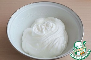 Белки (4 шт.) отделить от желтков. Взбить белки до стойких пиков. -