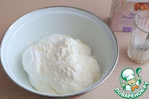 Взбить желтки до легкой пены. Добавить муку (1 ст. ложка), ванильный сахар (1ч. ложка). смесь хорошо взбить.