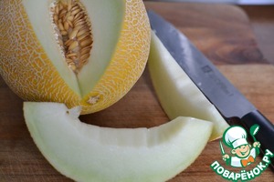 Дыню разрезать на дольки и выбрать семена