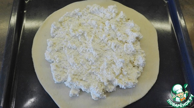 Добавим их к творогу, затем растопленное сливочное масло. Все перемешаем и начинка готова. Любителям более сырного вкуса творог можно смешать с сулугуни, брынзой, сыром, можно добавить мелко нарезанный зелёный лук. Самое главное чтобы начинка не превышала 500 г на один пирог.