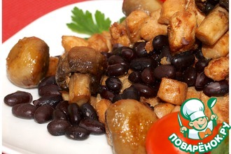 Теперь добавьте нарезанное филе куриной грудки (оставьте немного для украшения салата) и все хорошо перемешайте.