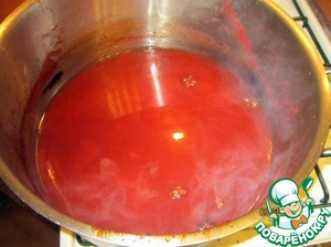 Кипятим арбузный сок на сильном огне 10 минут, постоянно его помешиваем.