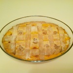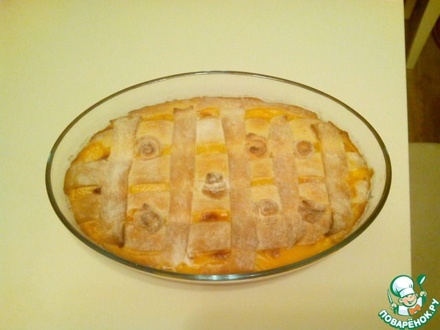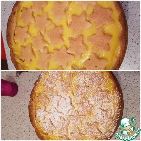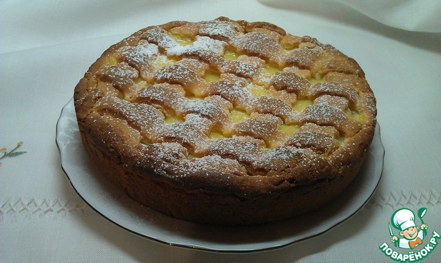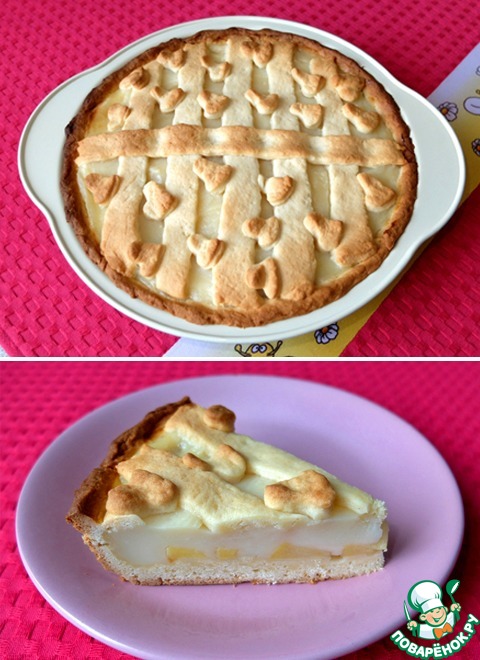 Описание достаточно подробное и понятное, замесила тесто и подготовила пудинг без проблем. Все по рецепту, разве что пудинг заваривала в микроволновке (пару раз по минуте на максимальной мощности). Тесто получилось очень приятное, мягкое. ? по форме распределилось хорошо (даже без мокрых рук и ложки), и раскаталось для вырезания декора отлично. Понравилось, что в процессе выпекания оно не деформируется, не растекается - решеточки остались довольно четкими. По периметру украсила цветочками, как и у вас (вырезала формочкой из набора для канапе), еще и на несколько цветочков по центру хватило. Для себя сделала пометку на будущее, что можно использовать форму даже больше 20 см, особенно если декор будет только с решеткой, без цветочков, потому что в готовом пироге краюшек получился немного толстоват, можно было тоньше сделать. По вкусу пирог замечательный! Еле уловимая кислинка яблок (брала Симиренко, 2 шт. среднего размера) прекрасно сочетание с толстенькой нежной прослойкой пудинга. Готовила на Рождество для гостей - все просили добавки и за последний кусочек чуть ли не дрались